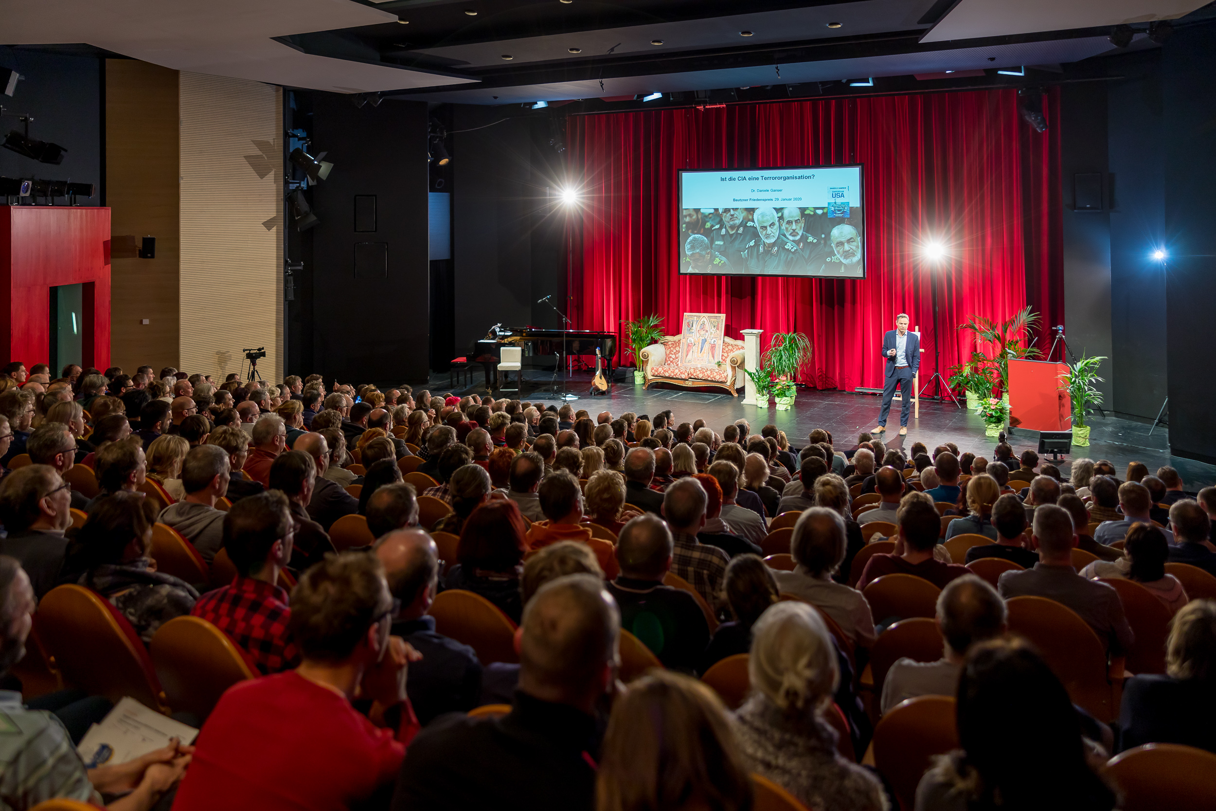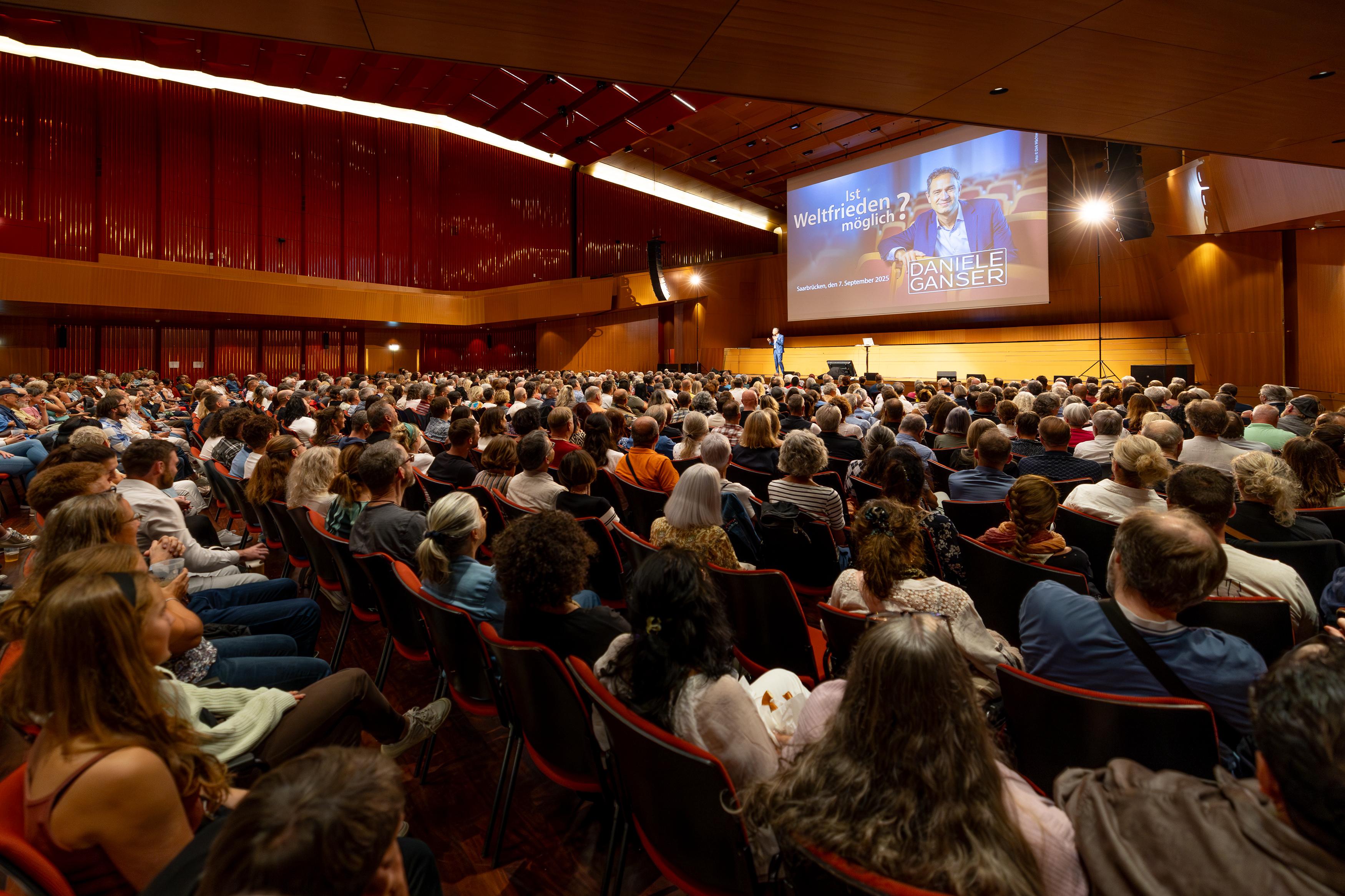 Ich untersuche die Themen Frieden, Energie, Medien, Krieg und Terror. Mein Ziel ist es, alle Menschen zu stärken, die sich achtsam für den Frieden und eine intakte Umwelt engagieren. Das grosse Interesse an meinen Vorträgen zeigt mir: Wir sind viele, die keine Kriege und keine Kriegslügen wollen! (Fotos: Dirk Wächter)